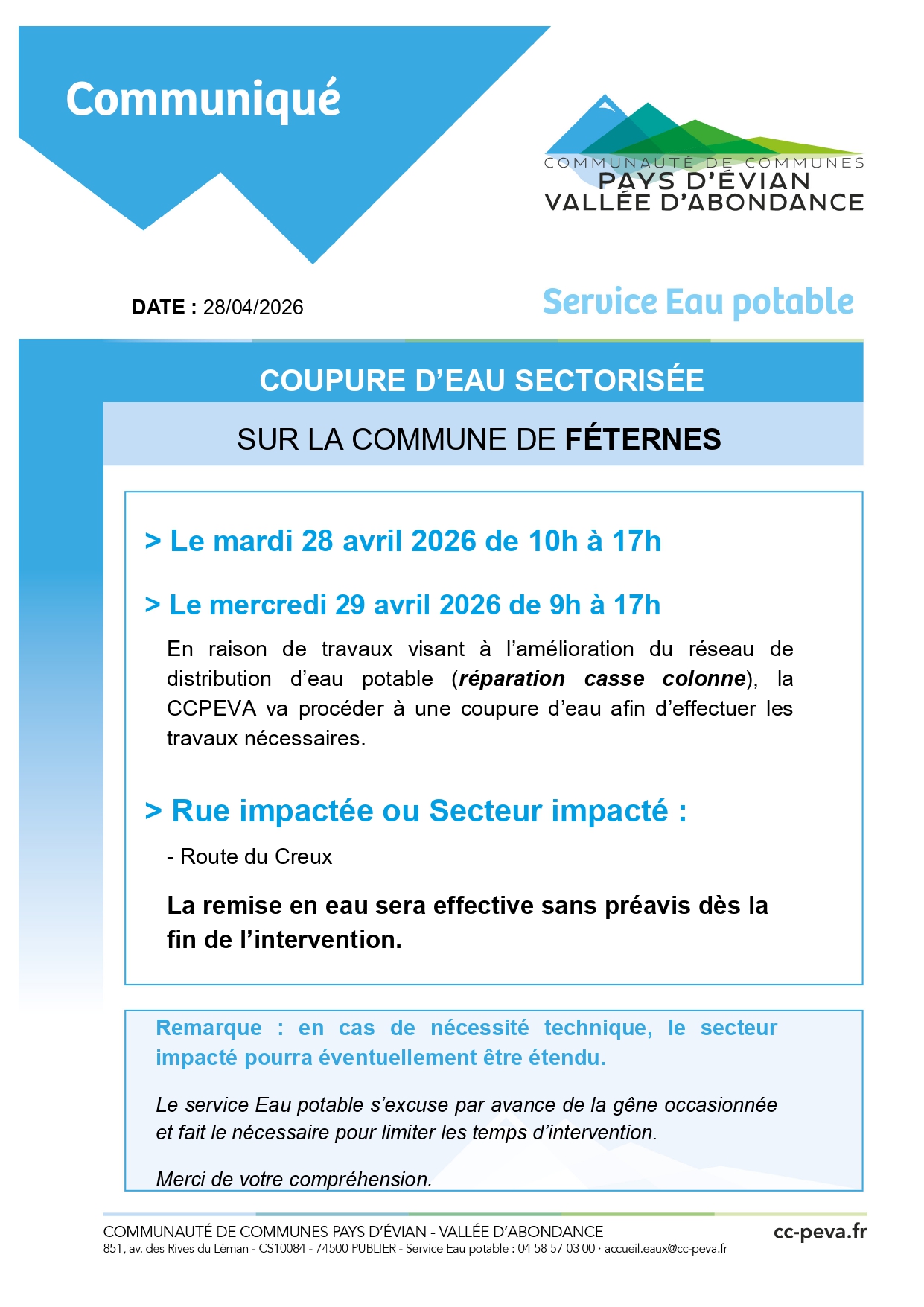 Astreinte eau (CCPEVA) uniquement pour les urgences : 06 74 26 81 92
