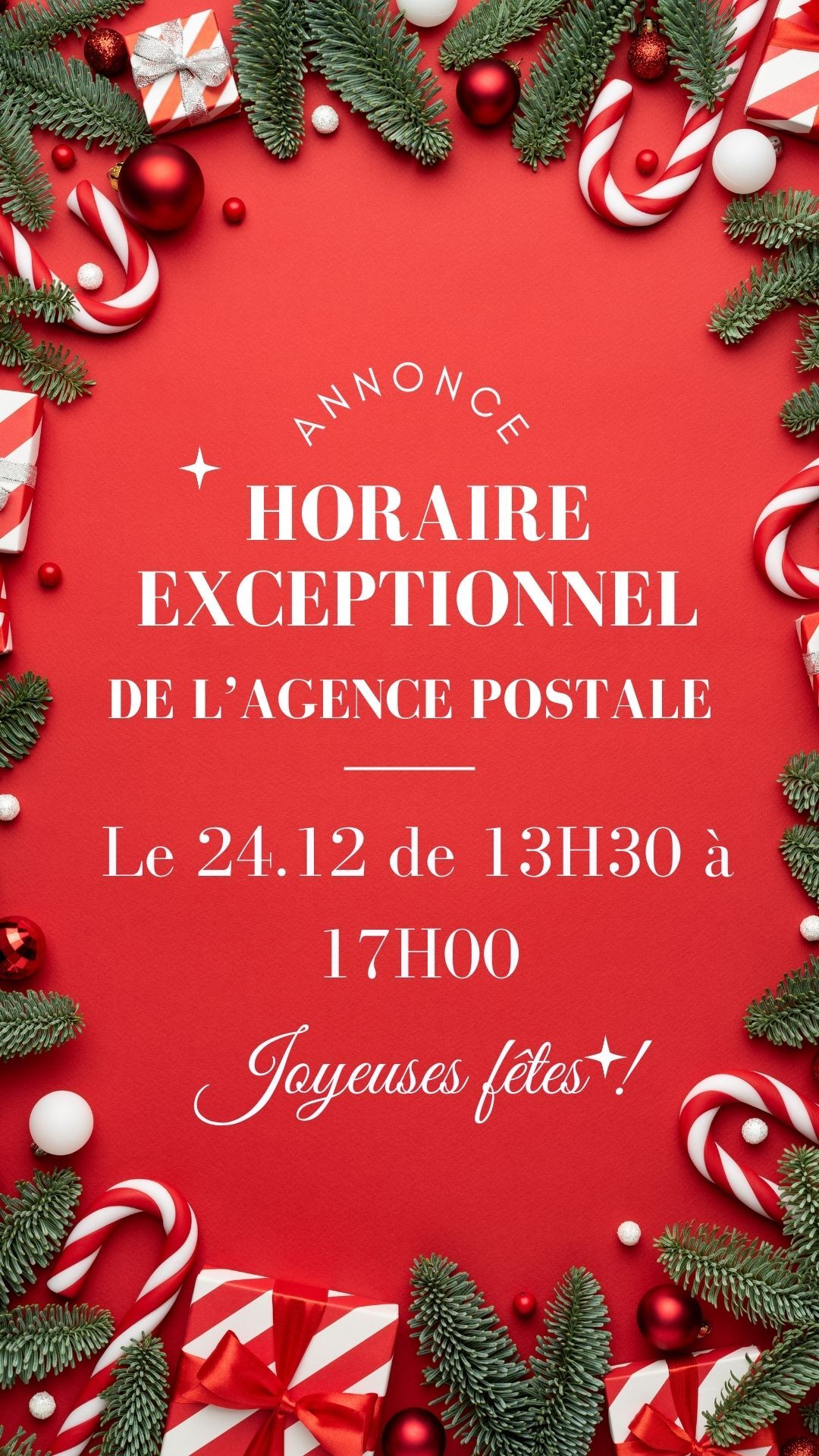 AGENCE POSTALE Horaire du 24 décembre 2025