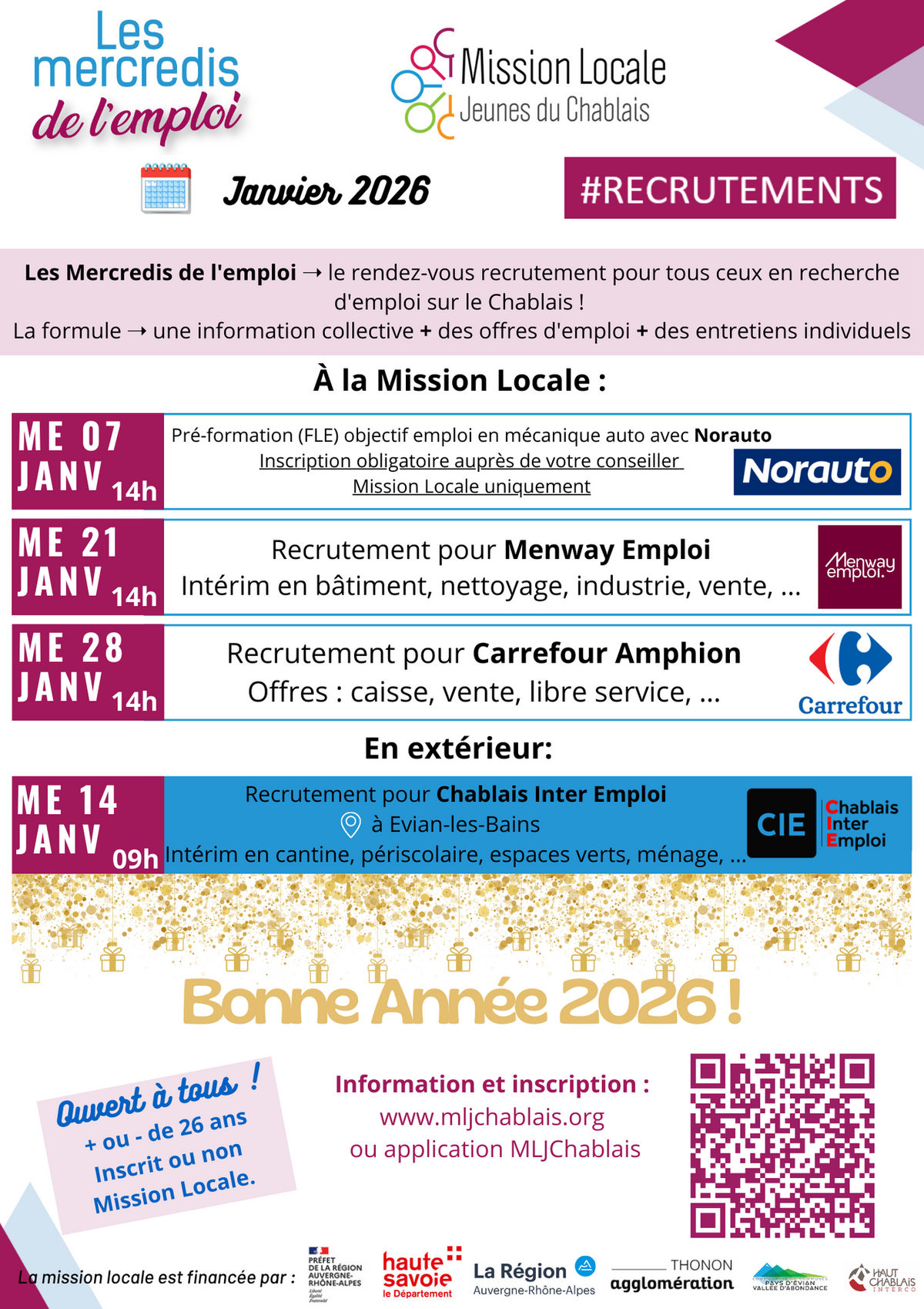 Les mercredis de l'emploi organisé par la mission locale pour le moi de Janvier 2026
