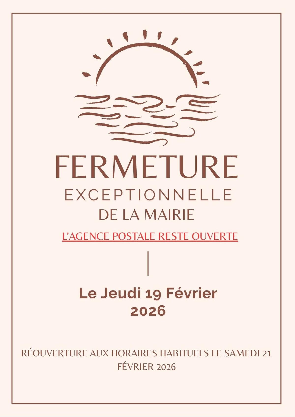L'accueil de la mairie sera fermé le Jeudi 19 février 2026.