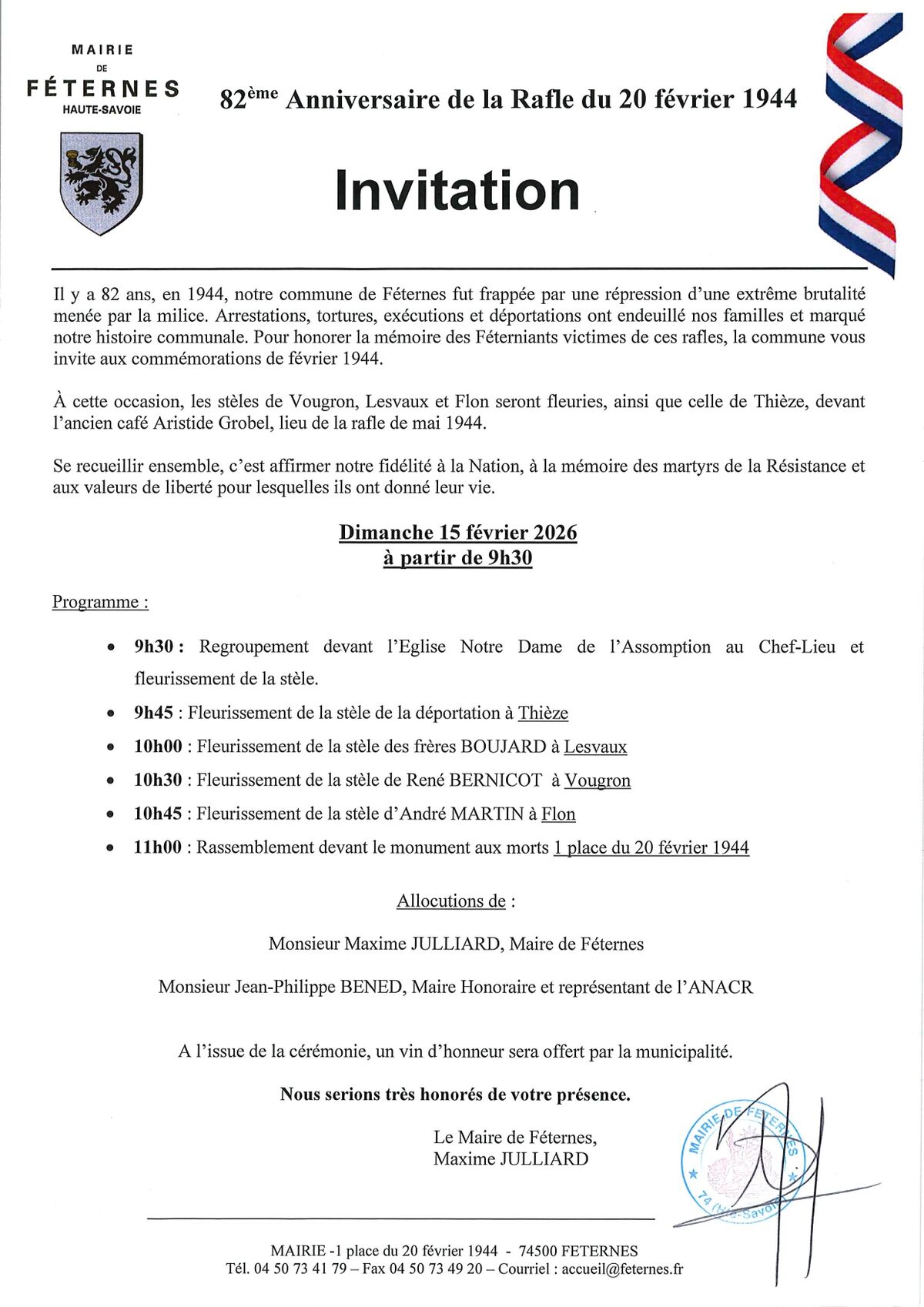 Dimanche 15 février aura lieu la commémoration du 82éme anniversaire des Rafles de 1944.
