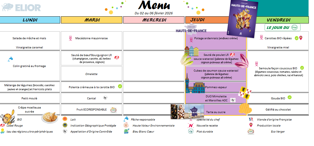 Menus du restaurant scolaire du 02 au 06 février