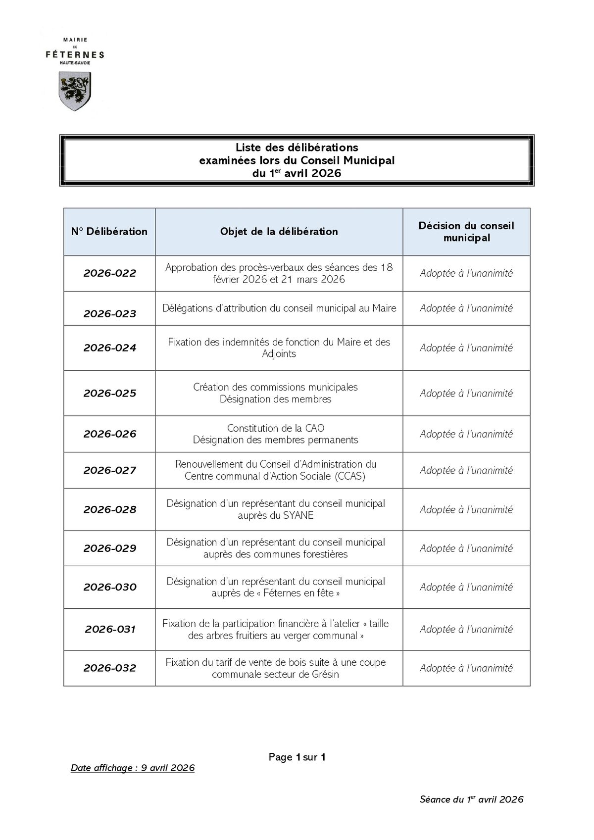Pour information le prochain Conseil Municipal aura lieu le mercredi 29 avril 2026.