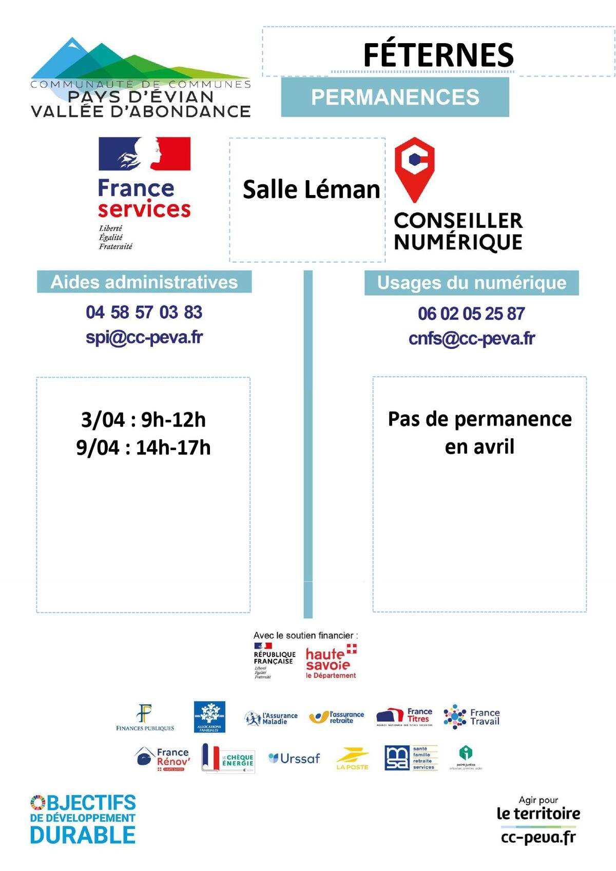 Permanence FRANCE SERVICES et USAGES DU NUMERIQUE sur la commune de FETERNES en AVRIL 2026
